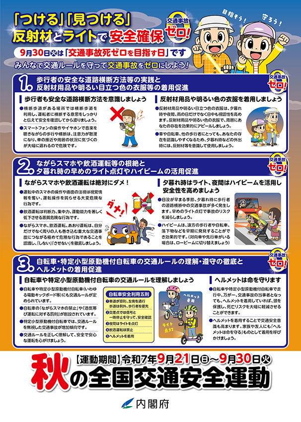 反射材用品や明るい目立つ色の衣服等の着用促進