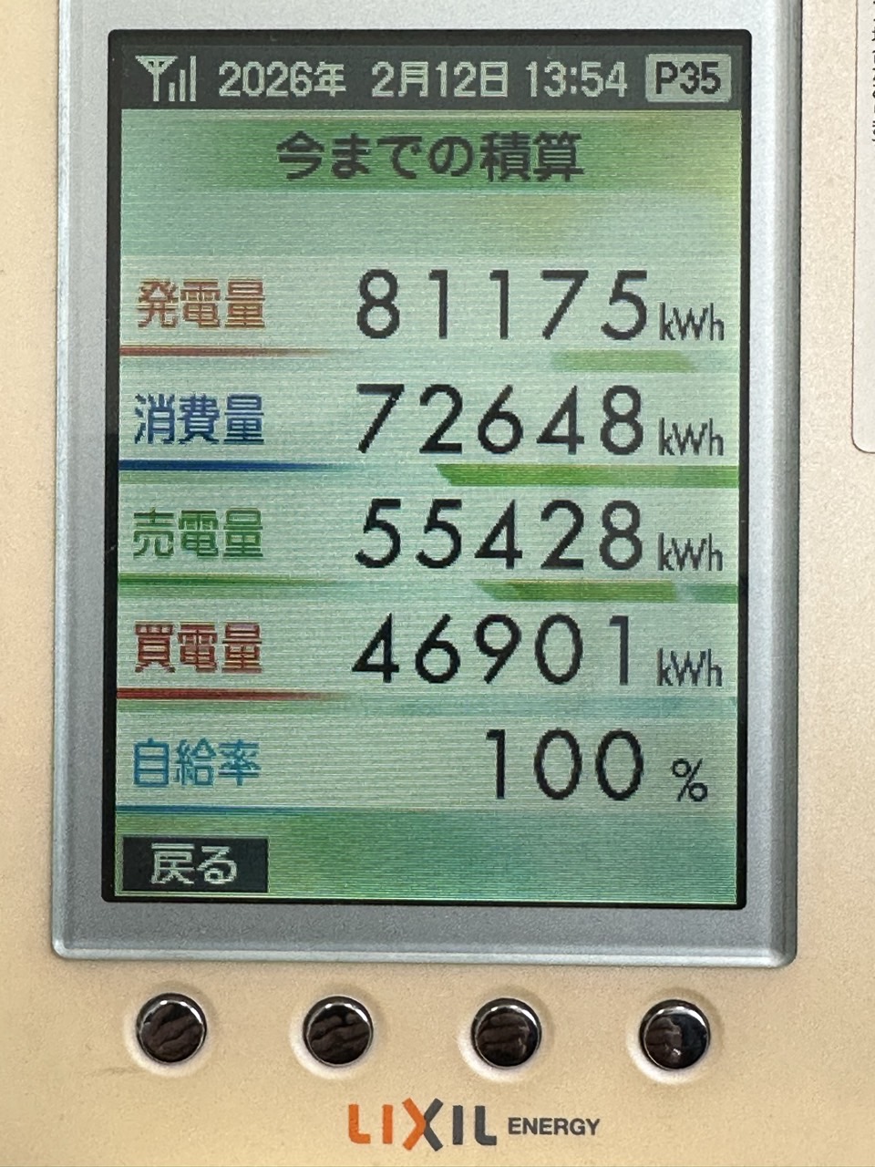 発電量 64kwh 11kwh減