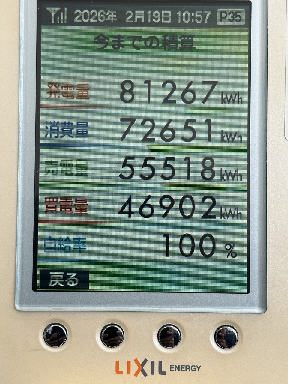 消費量が増減なし、買電量が減少しました。