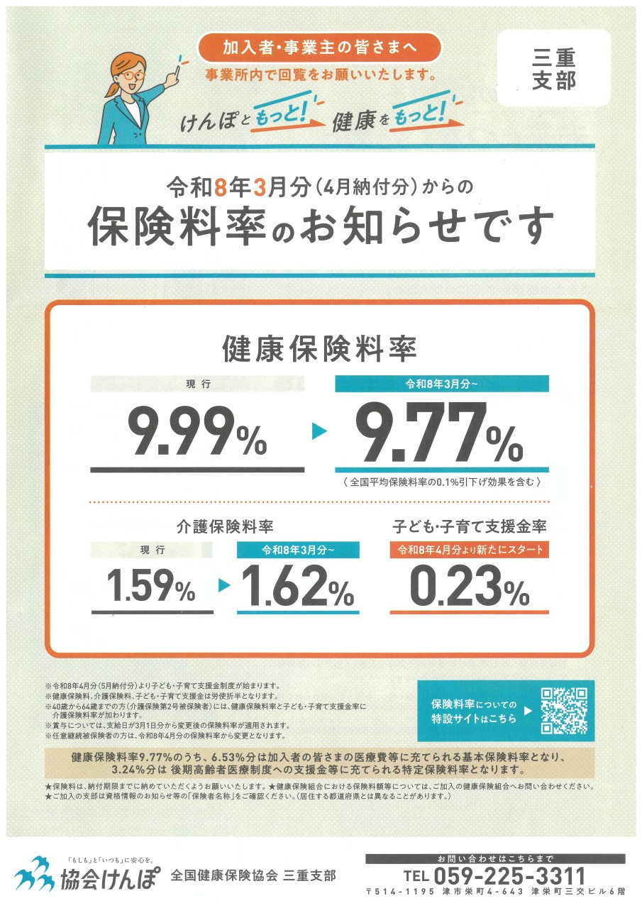 当社が加入する協会けんぽ(三重県支部)の