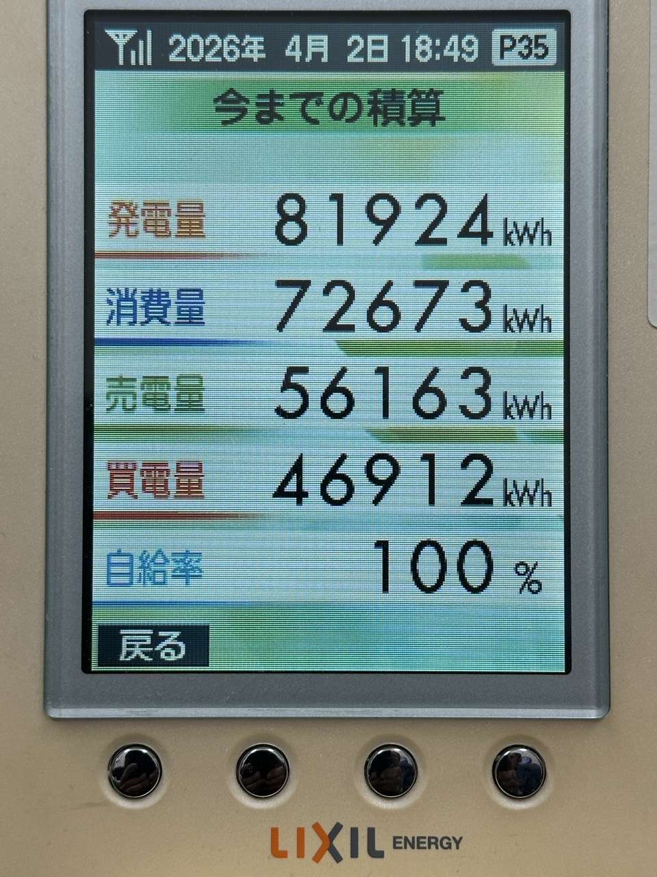 発電量 115kwh 2kwh減