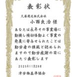 2025年度 第36週の始まりです。 12月の月別目標は、『交通安全』です。 津北営業部の小西良治さんが 多年にわたりその事業場に勤続し 精励恪勤よく事業の 発展に寄与せ...